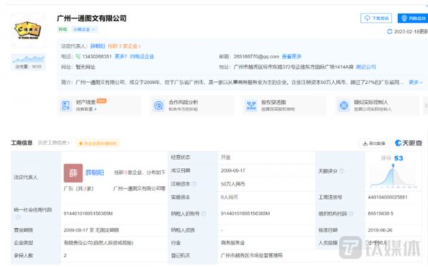 天眼查显示,一通图文成立于2009年,注册资本为50万元,实缴资本为0元,薛红霞的弟弟薛朝阳持股64%。
