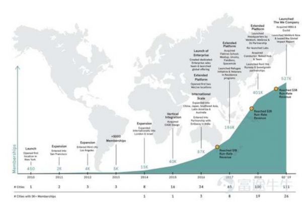 此外,业务遍布全球的Wework空间对于跨国公司的吸引力也在逐渐变大,新设办事点的便利性被大大提高。