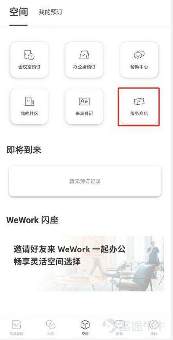 除了需求看板以外,Wework还在空间模块设置了服务商点入口(新上线不久)。这是Wework基于会员规模及其数据,进一步提供的撮合与导流服务。当用户习惯在空间服务模块使用会议预定、办公桌预定等日常服务之后,对平台有了信赖感和使用习惯,这使得Wework的广告服务成为可能。