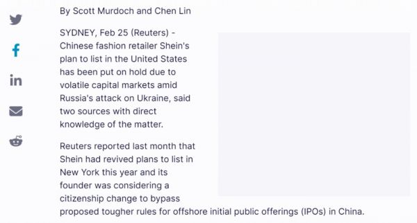 2022年,路透社(Reuters)曾报道,据其两位知情人士透露,SHEIN2020年就开始准备赴美IPO,但遭到搁置,2022年又“重启”了纽约上市的计划,甚至表示SHEIN创始人许仰天(Chris Xu)在考虑改变国籍,以便绕过针对中国企业境外IPO的严格规定。