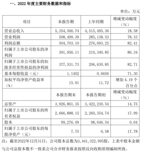2022年,圆通速递实现营业总收入535.46亿元,同比增长18.58%;归属于上市公司股东的净利润39.20亿元,同比增长86.34%;归属于上市公司股东的扣除非经常性损益的净利润37.75亿元,同比增长82.71%。