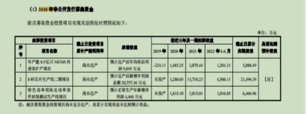根据士兰微最新披露的前次募资使用情况报告,2018年,公司7.32亿元募资中,原计划是“3.06亿元投向年产能8.9亿只MEMS传感器扩产项目、3亿元用于8吋芯片生产线二期项目建设、1亿元用于特色功率模块及功率器件封装测试生产线项目建设”。
