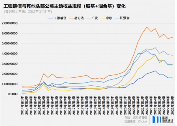 但这一年工银瑞信的权益基金规模没有再重现如2015年那般远超同行的增长速率,反而被许多头部基金公司拉开了相当大的差距。