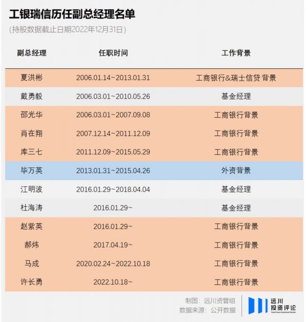 而更上层的职位,则都是由原总行高管背景的人士接手,如2021年空降工银瑞信,接任总经理职位的高翀,此前便在工商银行任职。