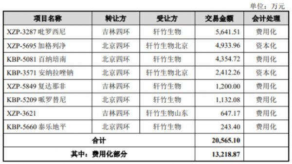 根据轩竹生物的解释,在公司组建自有临床研发团队之前,上述项目均为轩竹生物山东自主研发,只是被四环医药安排给北京四环和吉林四环来推进临床研究。