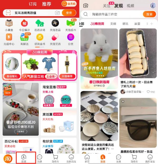 淘宝逛逛入口及首页,图/淘宝APP