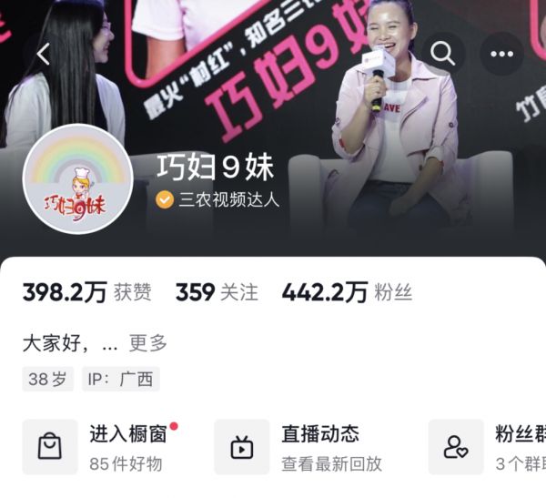2017年,甘有琴开始以“巧妇九妹”这个网名,制作她下厨、干农活的短视频。作为最早开始入驻平台的“农村”类型博主之一,“巧妇九妹”的粉丝增长很快。虽然操着一口并不流利的普通话,甘有琴还是凭着自己淳朴、能干的形象,获得了许多网友的支持。她开始为自己家乡的水果“代言”,利用电商平台直销村里乃至临近村、乡的各种水果,直播镜头里的“大家好,我是九妹”也飞出了山林,依靠互联网被全国的网友听见、看见。