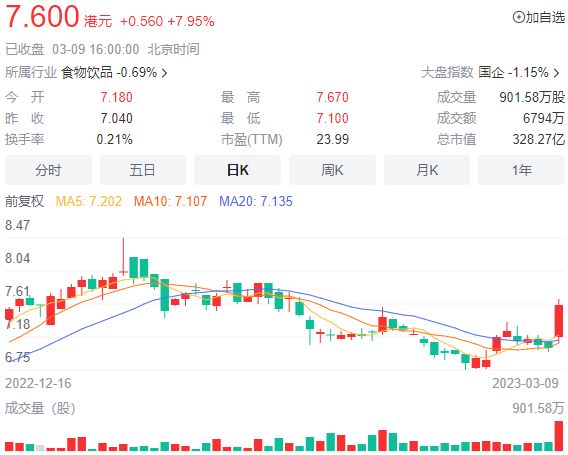 然而,对于这一业绩,资本市场反应较为积极。3月9日,统一港股报收7.60港元/股,大涨7.95%。