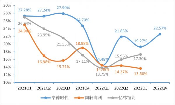 从毛利率变化也可以看出,二季度随着公司对电池价格进行调整后,毛利率有较大幅度提高,2022年公司毛利率较2021年下降幅度较大,也显示出上游原材料价格上涨对公司盈利能力造成一定压力。