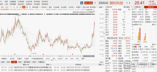 大股东减持消息一出,着实给朗科科技的股价当头一棒,隔天二级市场股价低开近3%,随后回升,截至3月17日收盘,报20.41元,总市值40.90亿元。