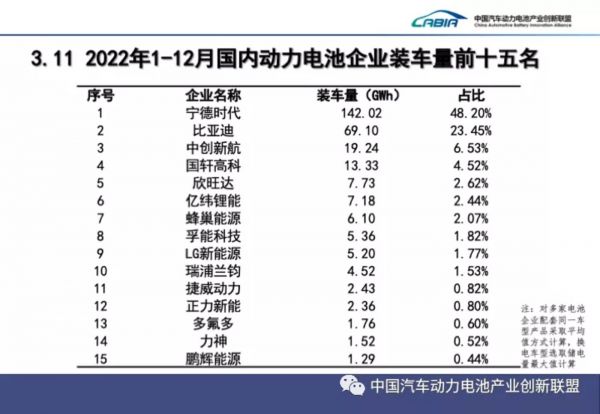 在国内的动力电池市场中,宁德时代虽然优势更明显,但市占率已出现下滑,其2022年装车量142.02GWh,市占率降至48.2%,这是2019年以来,宁德时代国内市占率首次跌破50%。