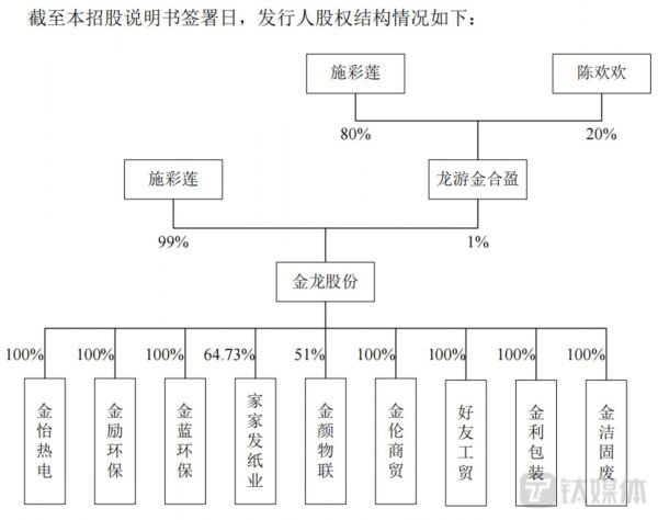 时至今日,施彩莲直接持有金龙股份99%股权,通过龙游金合盈间接控制持有1%股权,合计控制金龙股份100%股权。叶剑系施彩莲的儿子,未持有公司股权,但其配偶陈欢欢通过龙游金合盈间接持有公司0.2%股权。因施彩莲持有龙游金合盈80%出资份额,且为执行事务合伙人,故实际支配金龙股份100%的表决权。