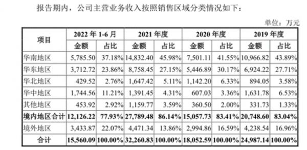 从区域上看,汇富纳米的产品主要是销售至境内,具体如下: