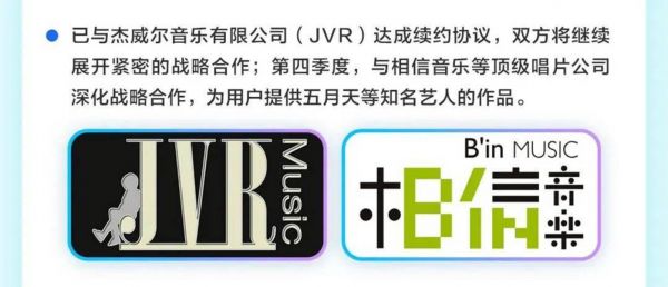在腾讯音乐的新财报里提到了一个版权信息,财报发布同日,腾讯音乐宣布与杰威尔音乐、相信音乐达成续约协议。