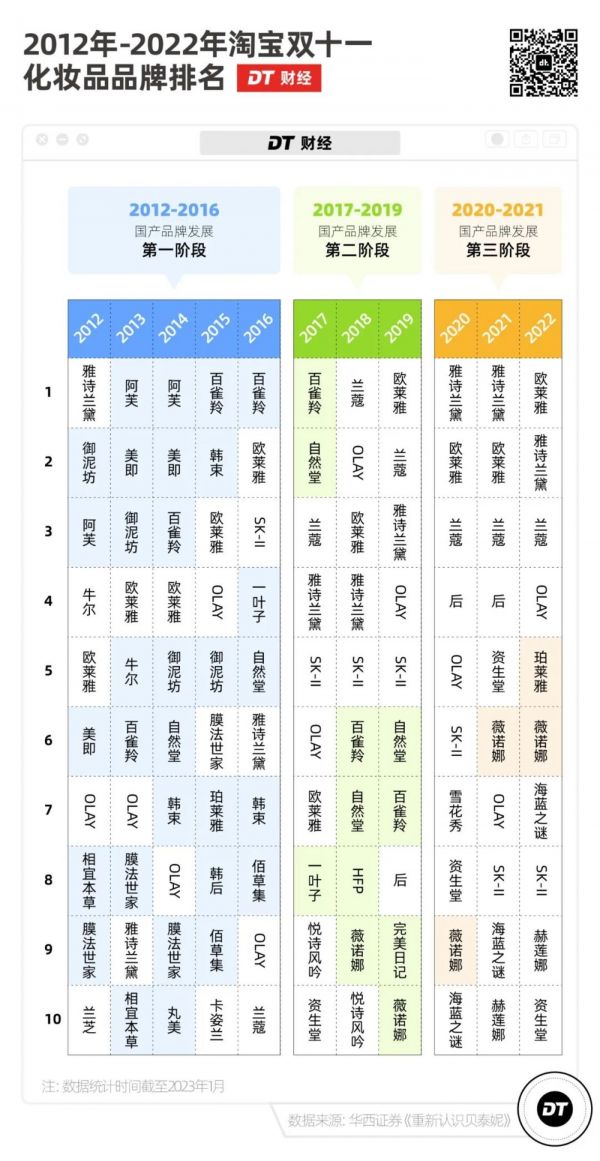 淘宝双十一热销榜单在一定程度上记录了国货护肤品牌的变迁。