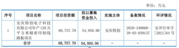 有意思的是,面对如此情形,特创科技似乎把未来也押宝在了PCB上。据悉,特创科技此次IPO仅一个募投项目,它就是安庆特创电子科技有限公司年产120万平方米精密印制线路板项目,该项目建设完成后,公司将新增年产120万平方米刚性线路板及HDI板。(注:刚性线路板及HDI板是PCB中的一种)