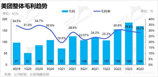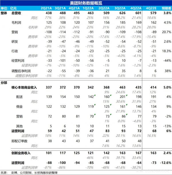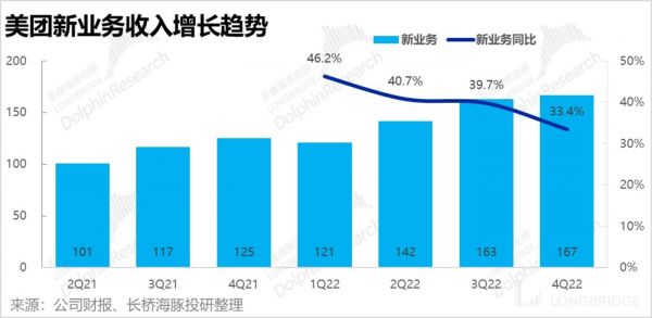3、新业务继续减亏:新业务收入(剔除掉了闪购和类 OTA 的民宿/交通票务)是 167 亿,同比增速较上季略有放缓到 33.4%。由于疫情和基数影响,增长略有放缓并不是问题。同时,新业务亏损已经进一步缩窄到了 63.7 亿,少于市场预期 73 亿的亏损,在减亏上美团的推进效果还是肯定的。