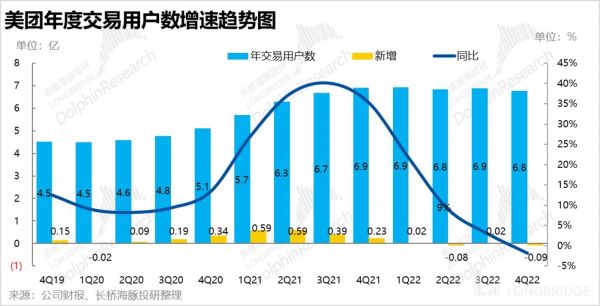 但是,由于获客型业务社区团购的收缩 & 疫情的影响,本季度和 1Q20、2Q22 时一样,都出现了交易用户环比减少的情况。海豚君认为主要还是得疫情背锅,但在缺乏新业务增量的情况下,美团的用户数是否已经见顶可能也需要关注了。