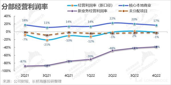 包括即配物流在内,整体核心本地商业的收入是 437 亿元,同比增长 17.4%,比市场预期的 414 高出 5%,但海豚君注意到卖方预期基本和 3Q 是管理层指引一致,并未及时反映 12 月开始的复苏。因此海豚君认为,实际表现与更新频繁的买方预期相比应当是大体一致或者略超。
