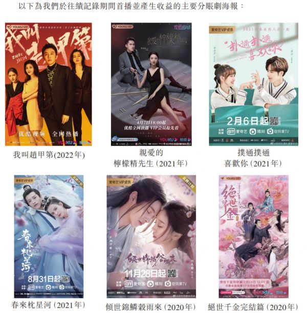 作为深耕互联网市场的企业,耐看娱乐自成立起就与各大视频网站绑定,包括优酷、爱奇艺、腾讯视频、芒果TV及B站等。除了分账合作模式,耐看娱乐还会承接视频平台的需求,开发及制作定制剧,负责监督及处理制作过程,并收取制作费。