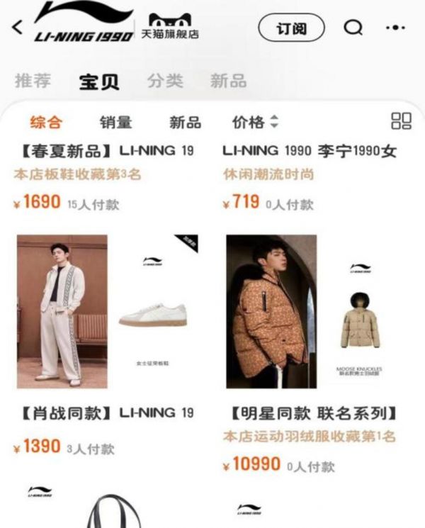 2021年新成立的“李宁1990”品牌也在向高端市场进发。据淘宝天猫数据,李宁1990产品均价在1000元左右,个别产品超万元,但店铺整体成交稀少。