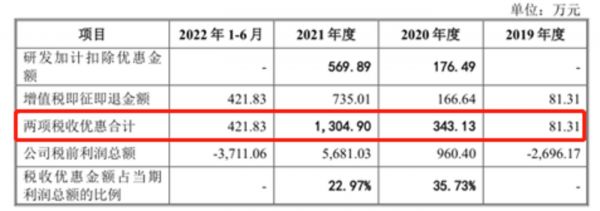 钛媒体APP还注意到,信宇人的利润还较为依赖政府补助和税收优惠。报告期内,公司政府补助的金额分别为1077.76万元、978.3万元、704.63万元、1103.09万元;税收优惠的金额分别为81.31万元、343.13万元、1304.9万元、421.83万元,其中2020年和2021年,信宇人税收优惠和政府补助的金额合计占当期利润总额的137.59%、35.37%。(注:因为2019年和2022年上半年,信宇人的利润总额均为负数,因此未计算)
