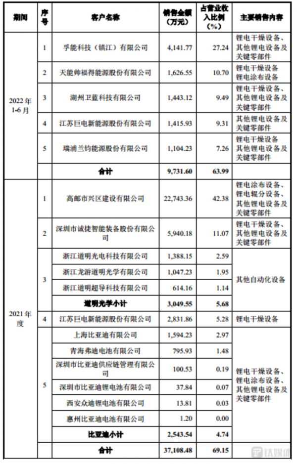 从客户上看,报告期内,信宇人向前五大客户产生的销售收入分别为7757.66万元、11223.52万元、37108.48万元、9731.6万元,分别占当期主营业务收入的60.62%、46.69%、69.15%、63.99%,具体情况如下: