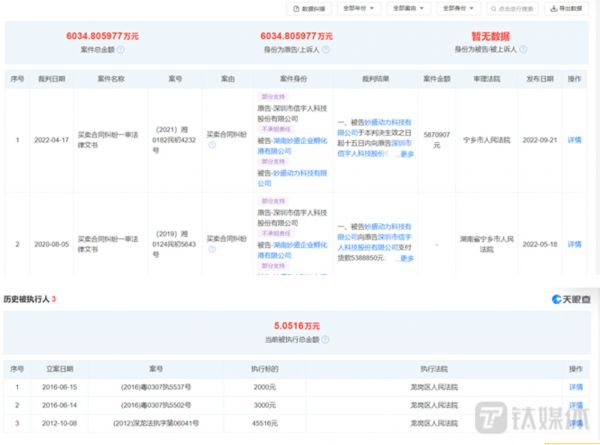 在诉讼方面,信宇人似乎也是一位“熟手”。天眼查显示,截至目前为止,信宇人合计拥有34起诉讼案件,案件总金额高达6035万元,其中24起为买卖合同纠纷。与此同时,信宇人还曾先后3次被列为被执行人。