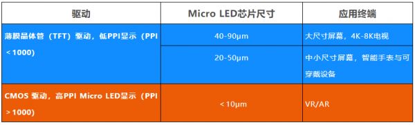 如今,Micro LED因为应用终端和尺寸(像素密度)的不同,衍生出泾渭分明的工艺和技术方向: