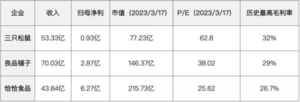 我们拿三只松鼠、良品铺子和恰恰这三家公司举例,这是三家在产品结构上比较接近的上市公司。