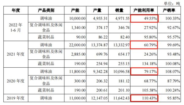 本身公司并未满产。2019-2021年,公司调味油产能利用率分别为110.43%、79.17%、60.79%,复合调味料及休闲食品产能利用率分别为71.29%、68. 77%、24.26%,产能利用率较低。如果投产项目完成,意味着调味油、复合调味料产能会翻接近一倍,过剩的产能反而会带来闲置生产的成本。