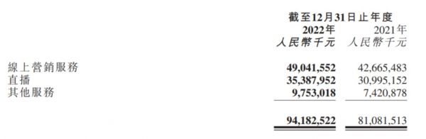线上营销、直播、其他(含电商)是快手的三大主营业务。得益于电商收入的增长,第四季度及全年其他(含电商)服务收入板块分别同比增长33.7%及31.4%,各达到32亿元及98亿元,成为收入增速最快的业务。