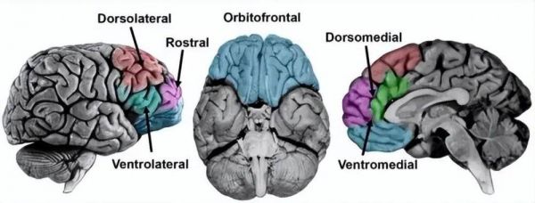 前额叶皮层分为背外侧、腹外侧、内侧和眶额皮层,各个区域有不同的功能,但并不是这里分析的重点[16]。