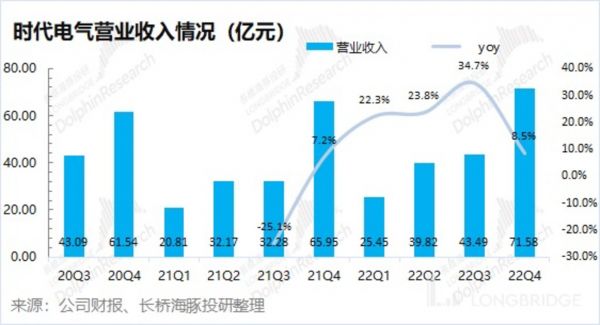 2022 年时代电气的新兴装备业务实现收入 51.48 亿元,同比翻倍,这是公司收入增长的主要推动力。