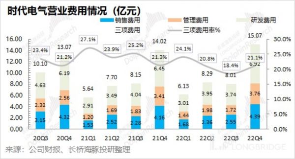 时代电气在四季度的经营费用 15.07 亿元,同比增长 7.5%。经营费用的增长和收入增长基本同步,本季度经营费用率 21.1%,与去年同期趋近。