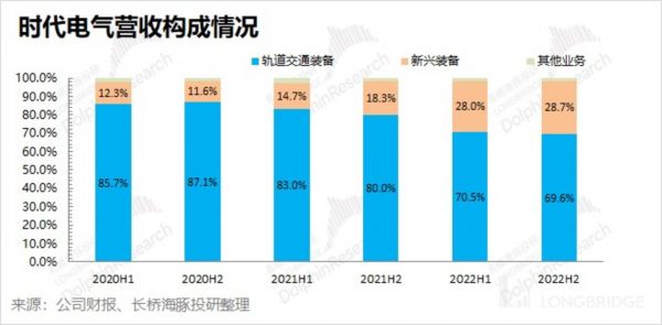 随着新业务的增长,公司逐渐转为轨交设备和新兴装备业务两条腿走路。从 2022 年下半年的情况看,轨道交通装备业务占比已经下降至 7 成以下。由于轨交业务相对平稳,新兴装备业务的成长给公司带来了新机会。