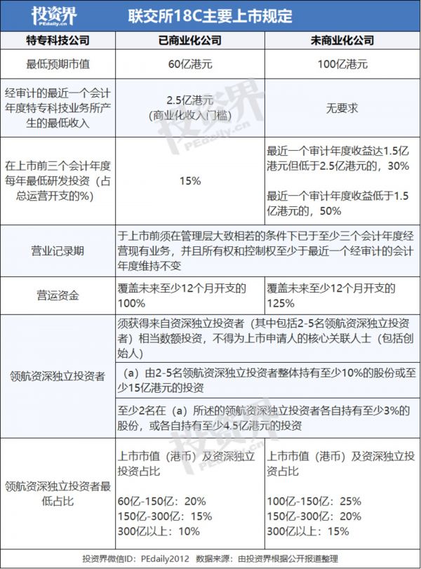 “最近几天,我们内部专门邀请了专业机构为被投企业做了详细的政策解读和培训。”常春藤资本高级合伙人路明告诉投资界,“梳理下来,有几家被投企业已经达到了18C的要求,目前在积极和券商沟通中。”而多家投资机构也透露,会适当组织达到门槛的被投企业赴港上市。