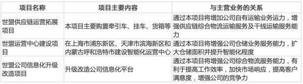 当下物流行业竞争愈发激烈,世盟股份希望借扩大运力、仓储布局来提升综合竞争力,并扩大市场份额。本次IPO公司拟投入募资6.4亿元,用于世盟供应链运营拓展项目、世盟运营中心建设项目、世盟公司信息化升级改造项目及补充流动资金。
