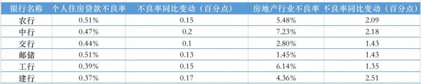 在个人贷款资产质量上,农业银行以及邮储银行的贷款不良率最高均为0.51%,中国银行的这一数据的同比增幅最大,提升了0.2个百分比。不过,与其他产品相比,个人住房按揭贷款不良率整体依然处于较低水平。