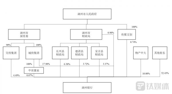 湖州市政府为湖州银行实控人。股东城投集团、长兴县财政局、交投集团、德清县财政局、安吉县财政局、湖州市财政局、传媒文创、中房置业基于行政关系、股权关系均为湖州市政府直接或间接控制的事业单位及企业法人。