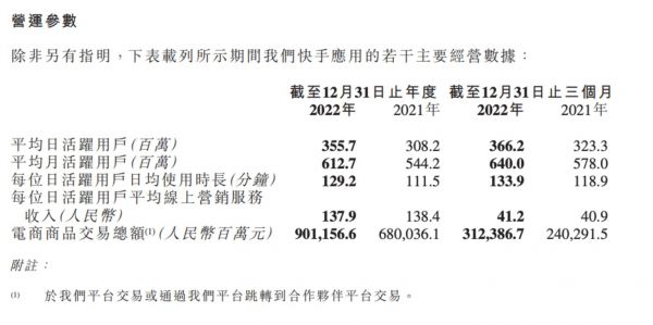 从全年情况来看,2022年的DAU和MAU分别为3.55亿和6.12亿,同比2021年同期,增长15.3%和12.5%。2022年用户粘性58%比2021年的57%明显提升,已经接近快手目标60%。