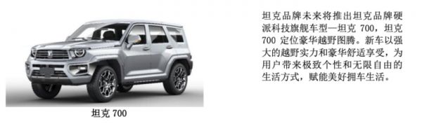 财报中的新信息显示,今年坦克品牌将有两款新车,一款去年已经亮相的坦克500PHEV,一款坦克700。
