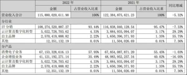 2022年,神州数码IT分销业务收入1082.75亿元,同比下降7.33%,而云计算及数字化转型业务实现营业收入50.23亿元,同比增长29.3%。