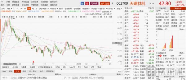 不过,这份亮眼的业绩却没有引发投资者过多的情绪。公告发布次日,天赐材料开盘冲高回落,整体弱势震荡,截至收盘上涨0.19%,股价收报42.80元/股,总市值825亿元。值得注意的是,天赐材料在去年7月曾上涨至67.88元高点,不过之后画风突变开启下跌模式,各路资金纷纷逃跑,股价从此一蹶不振。