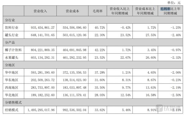 看似欢乐家在营收上取得了不错的成绩,细究可发现,公司的营收增速在逐渐放缓,2021年公司营收增幅为18.10%,到了2022年,营收增幅仅为8.37%,下跌了近10个百分点,其中营收贡献最高的椰汁产品增速也在放缓,椰汁饮料2021年增幅为38.53%,2022年增幅仅为1.72%,下跌了35个百分点。对于欢乐家椰汁饮料增速放缓的问题,欢乐家向钛媒体APP表示可能于消费者习惯有关。