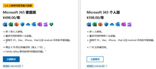 图5:微软Office的订阅付费模式,资料来源:微软官网