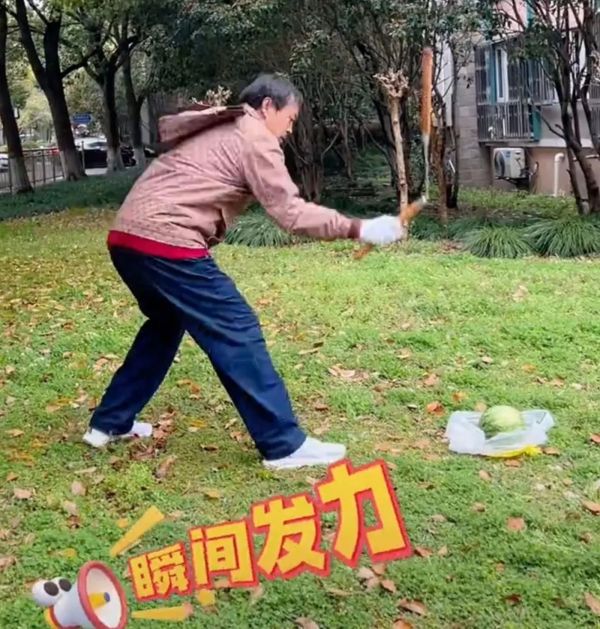 马保国在短视频中开始加入用双截棍打西瓜的桥段