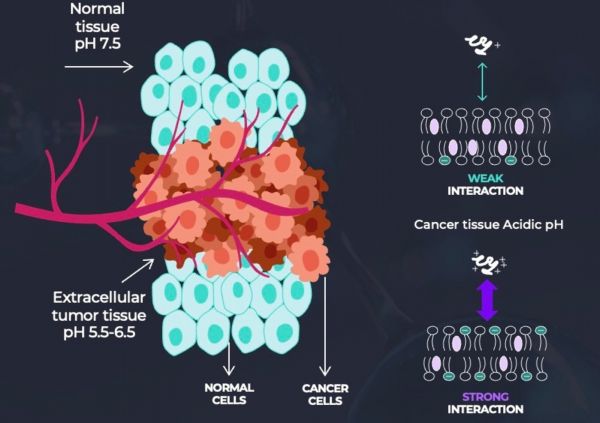 通过连接物,具有组织选择和渗透能力多肽载体与活性药物分子共价结合,将其导向至病变组织内部,发挥治疗作用,同时减少系统暴露和药物过量引起的毒副反应。Absotride创新型肿瘤靶向多肽MetaTide能通过识别肿瘤微环境和肿瘤组织选择性结合,在肿瘤病治疗中起到独特且广泛适用的“靶向定位”作用。