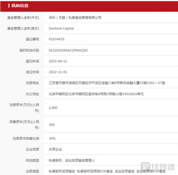 两个月后,王石控股的深石私募基金在中基协完成备案,注册资本1000万元,实缴资本300万元,机构类型为:私募股权、创业投资基金管理人,不同于二级市场的私募证券投资基金。