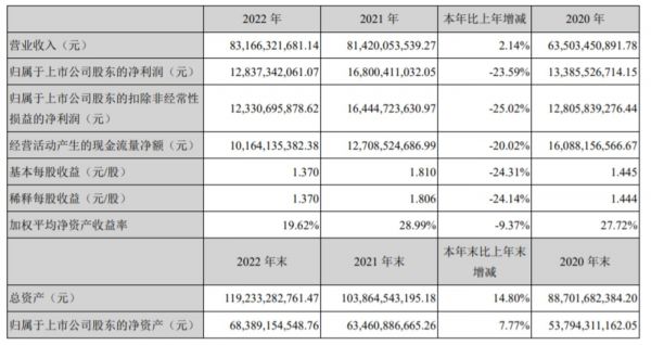 此前,2022年12月,国信证券曾预测海康威视2022年归母净利润为142.3亿元,浙商证券与华安证券也曾预测海康威视2022年归母净利润为135.73亿元和138.52亿元。然而此次财报发布,海康威视归属上市公司净利润为128.37亿元,整体表现已低于机构预期。